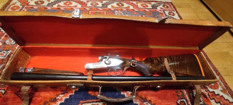 Antiguo pero totalmente restaurado. Medidas exteriores. 80*16*8 cm. Interior de fieltro. Ideal para una escopeta paralela fina. En perfecto estado de uso.
