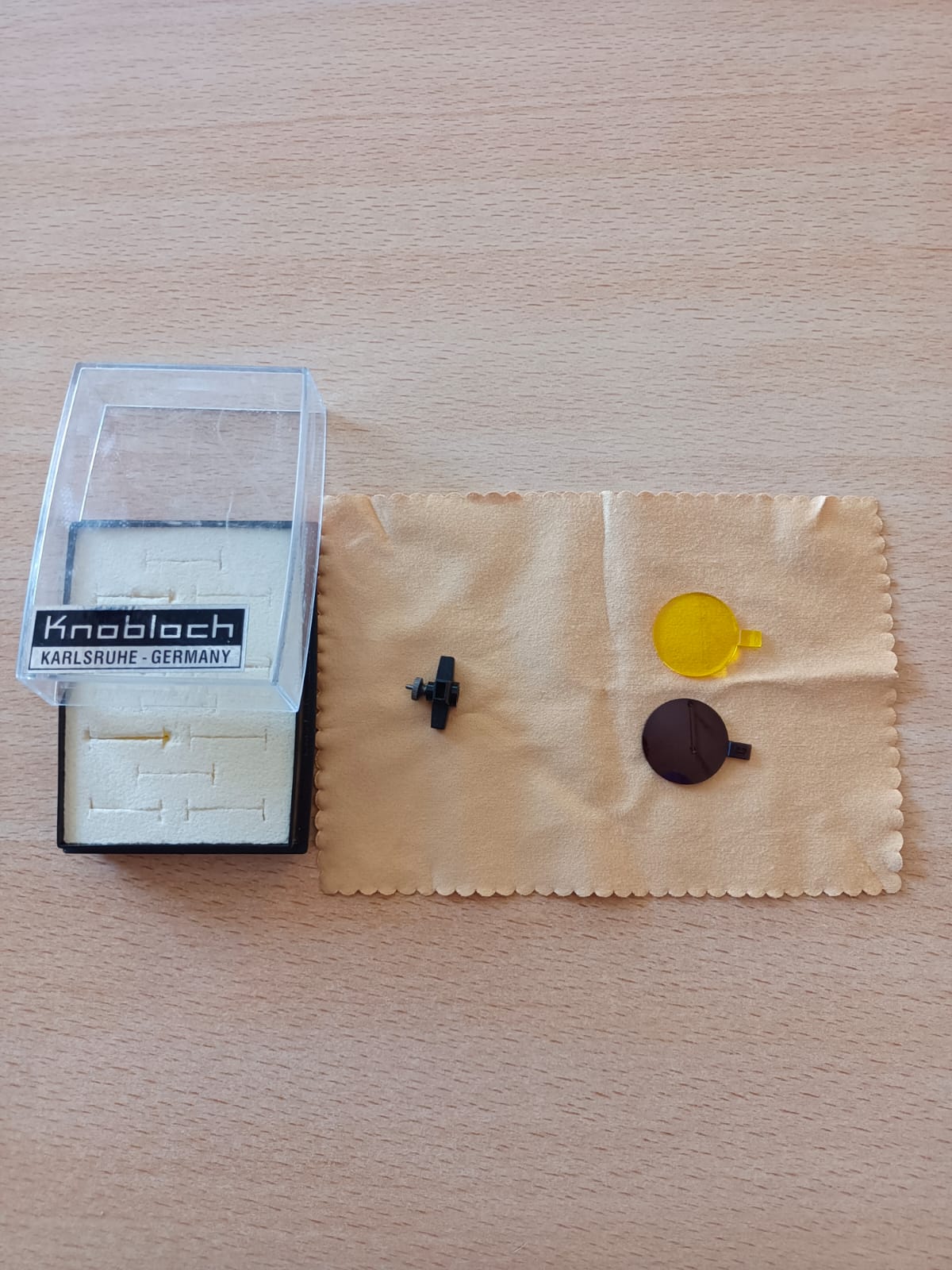 Filtros (2) de colores para gafa Knobloch, con soporte para atornillar en el aro portalentes.