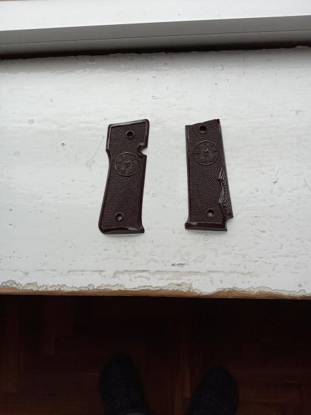 saludos: pongo a la venta una pareja de cachas para pistola llama 9 corto Especial pero creo que vale para mas modelos, una cacha le falta un cacho pero sirve igual, 18 euros portes por correos incluidos. Ahora 15 euros con portes incluidos