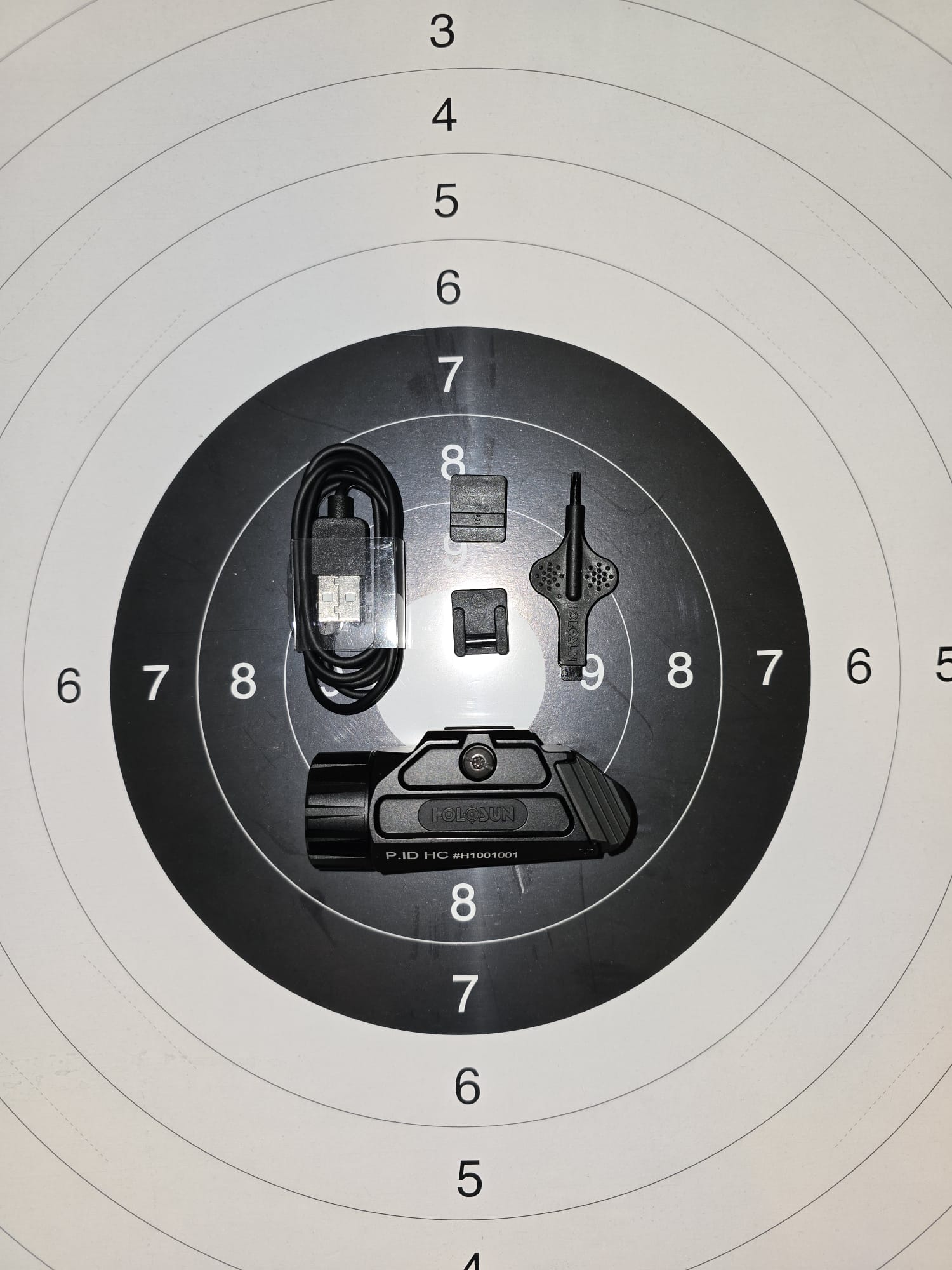 Linterna para arma corta/pistola. Poco uso, comprada en diciembre 2023. 800 lumen y 42.000 candelas. Recargable por USB con puerto magnético. IP68. Varios adaptadores para rail Picatinny MIL-STD 1913. Algo de desgaste en el pulsador derecho. Está en Logroño.