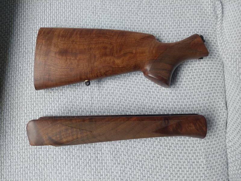 Culata y guardamanos para Browning Longtrack en nogal europeo grado 3, sin golpes ni arañazos, pequeña fisura en la culata como se muestra en foto, sin afectar a la estructura.
