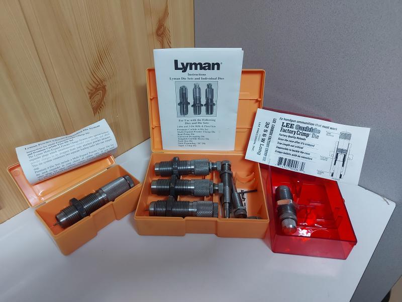 Vendo set de Dies Lyman .32 S&W Long. El set esta compuesto por un juego de 3 dies Lyman multi deluxe, 1 die Lyman universal para desempistonar sin recalibrar, un die LEE Factory Crimp y un ultimo die Lee para recalibrar a .311. En total 6 dies para el .32. Todo esta en perfecto estado.