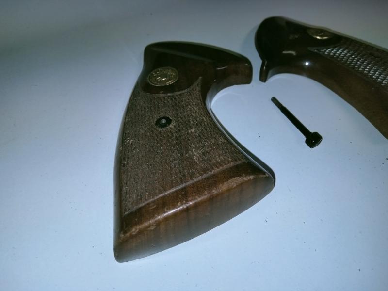 Vendo un juego de cachas originales de madera para el revolver Colt Trooper , con tornillo