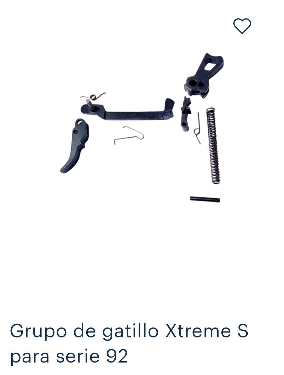 Me pongo ala búsqueda de kit de gatillo con todo sus componentes del kit extreme de la Beretta 92 X perfoman para instalar en Beretta 92 fs para mejor disparador me pongo ala escucha en precios razonable.