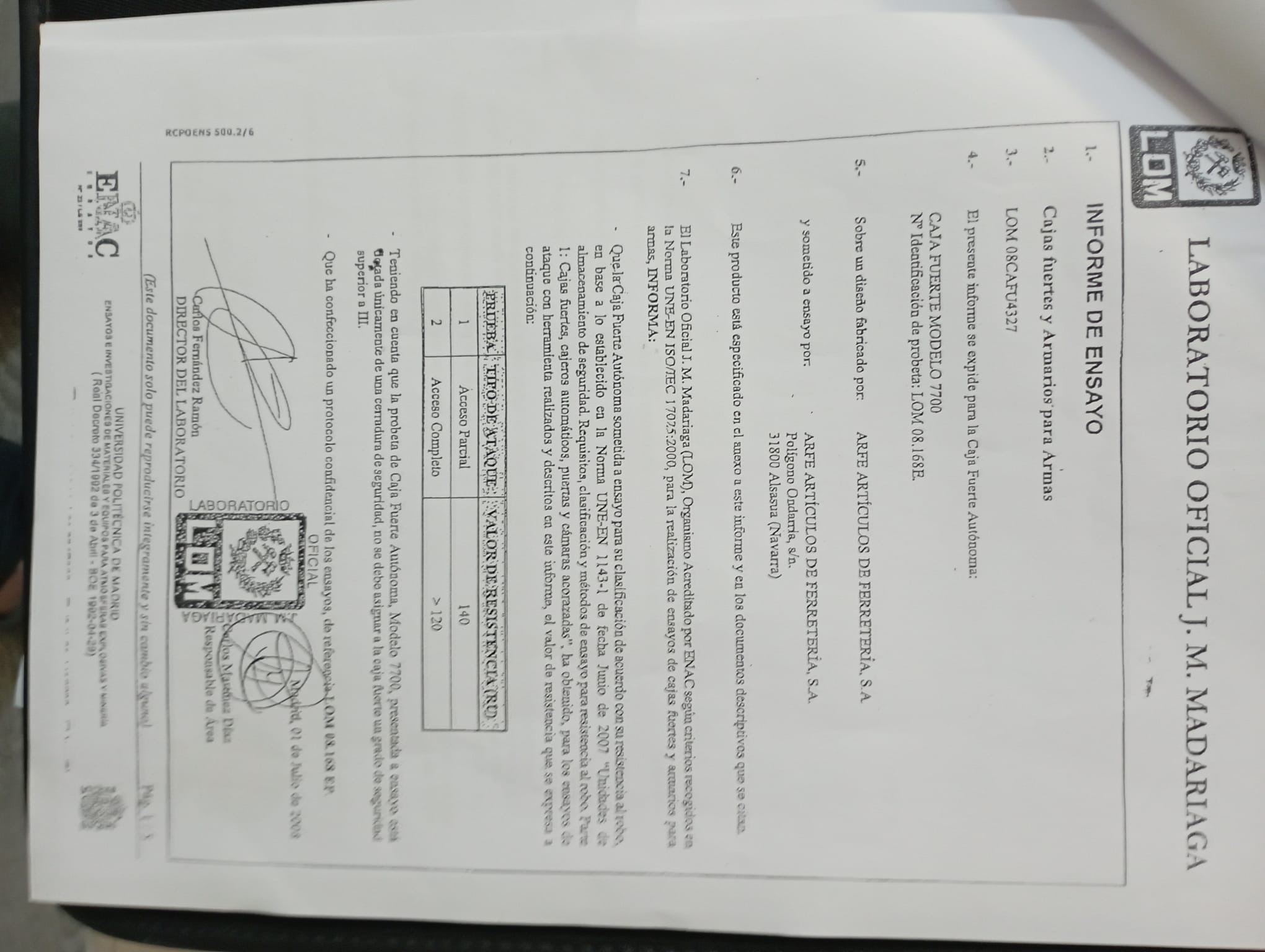 No es un armero grado III, ya que no cumple la norma vigente. Tampoco vale para arma corta a los poseedores de licencia F, ya que está sin armas guiadas y solo serviría para su propietario original.