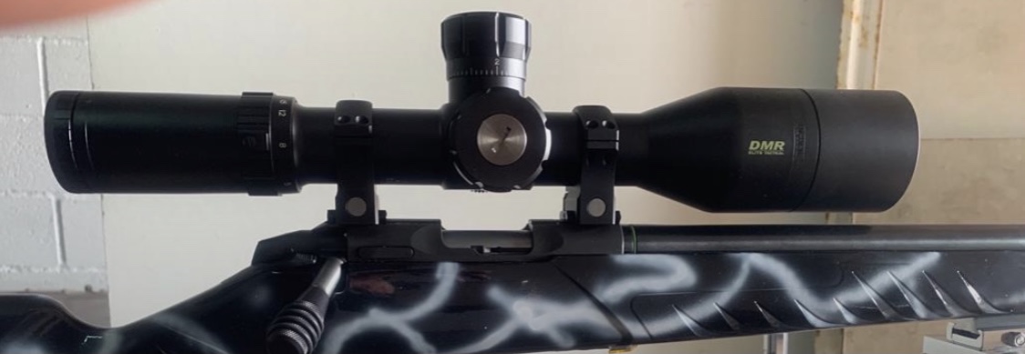 En la siguiente foto aparece un Bushnell Elite Tactical 3,5-21x50, de 34 mm de tubo, en una carabina Sako. Las anillas Picatinny llevan, en este caso concreto, unos adaptadores internos opcionales, que no elevan el conjunto, para poder acoplarlas al carril de 11 mm de la Sako.