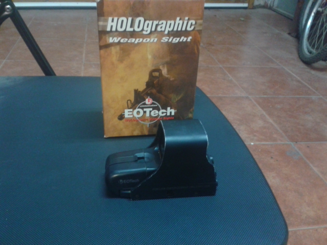 Vendo visor holografico eotech 511.A65. Tamaño compacto. Utiliza pilas lr1 El visor está usado y como puede verse en las fotos tiene los bordes del protector rozados( no quiero engañar a nadie) pero el funcionamiento es perfecto. El precio seria de 250 euros puesto en casa. Se puede ver en navarra.interesados por privado.
