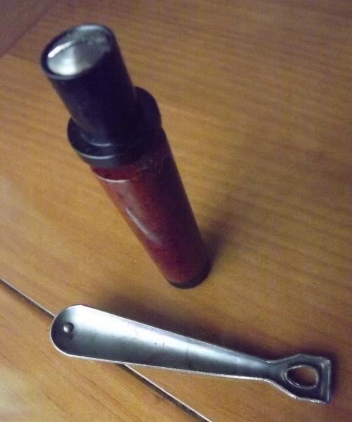 Vendo el lote compuesto de una aceitera + llave para abrir la puerta del cargador originales para rifle K98 o cualquiera de sus clones.