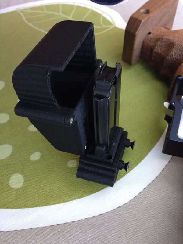 La fijación al cargador puede ser asegurada con los dos tornillos que han sido provistos a tal fin, pero no es imprescindible. Del mismo modo, como sucede en el original, podría usarse el sistema de pasador de la base del cargador para sujetarlo, pero considero que es una solución menos práctica (Consultar).