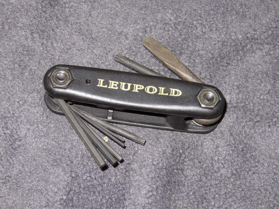 Herramienta multiuso de Leupold con llaves allen, destornilladores,..., que permiten actuar sobre visores y armas, para su regulación, fijación y ajuste. Regalo con ella Kit destornillador triple de McMillan.