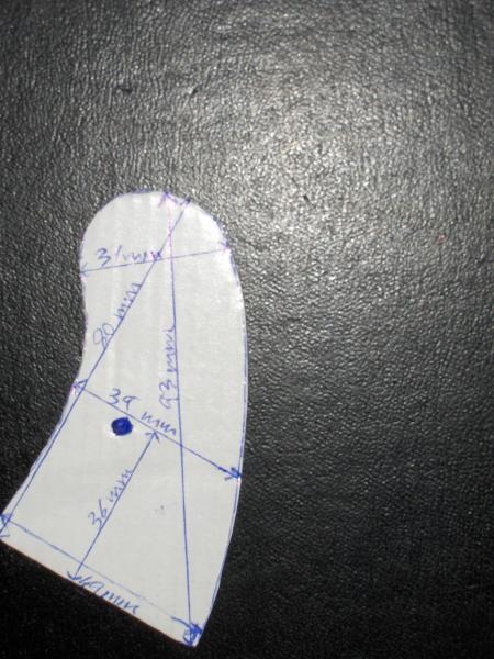 a) Anatómica con medidas máximas de 88mm y 62mm y mínimas de 76mm y 50. (Las medidas se refieren, respectivamente, a la zona de los nudillos y a la zona delantera donde dobla la primera falange, partiendo de la palma de la mano). En el interior, como se puede ver en una de las fotos, lleva unos retoques de pasta de madera, pues cuando la compré tuve que ponérselos para que encajase perfectamente en el armazón de mi Python.