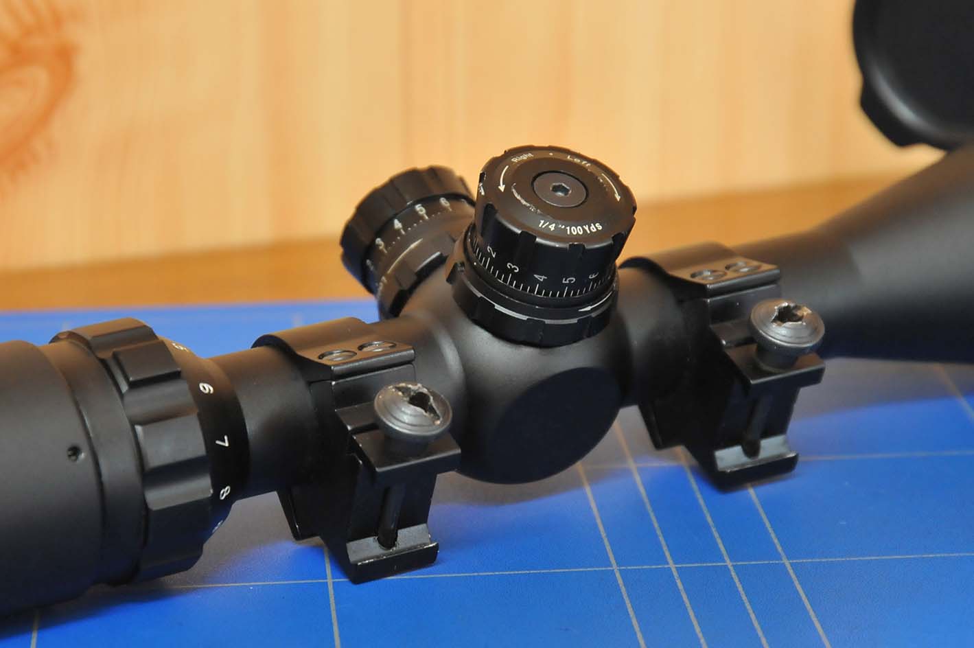 El visor se entrega tal como se ve en las fotografías, con una tapa el la parte de objetivo y con unas anillas para carril weaver o picatinny de 20mm.