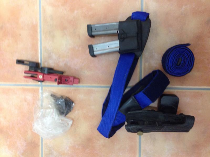 Ademas aquí yo veo dos fundas, unos porta-cargadores y cinturones varios.