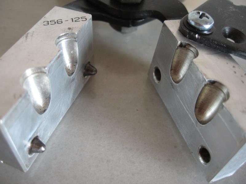 No es como las habituales turquesas de Lee, que llevan como dos palitos finos para el ajuste de las dos partes del molde, esta lleva dos tetones con sus dos correspondientes agujeros de inserción y ajuste en la otra parte del molde, al estilo de turquesas mucho mas caras como RCBS o LYMAN.