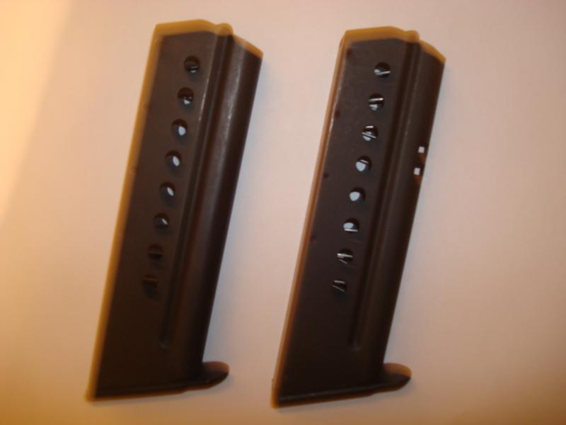 Cargadores originales para Sig-Sauer 220 en 9mmP . Hay uno de cada tipo, uno de retenida inferior (que valen los dos) y una superior.