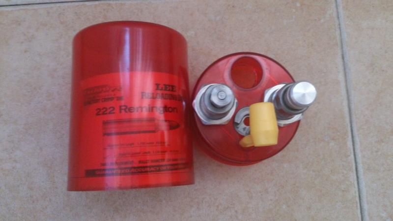Hola, vendo juego de 2 dies ( recalibrador y el que coloca la punta ) marca Lee del calibre .222R con su shell holder correspondiente, en muy buen estado. Están en Madrid. El precio son 25 euros con los gastos de envío incluidos. Un saludo.