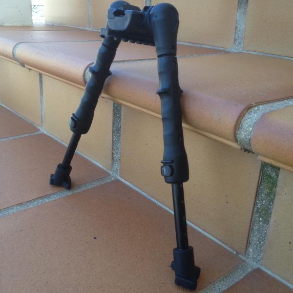 De calidad superior y adaptable al universal sistema picatinny cuenta con otro rail en la parte inferior para adaptar cualquier otro accesorio (laser, linterna...etc). Estructura de acero ligero recubierto de polímero de alta resistencia, patas abatibles independientes y extensibles con botón multiposición.