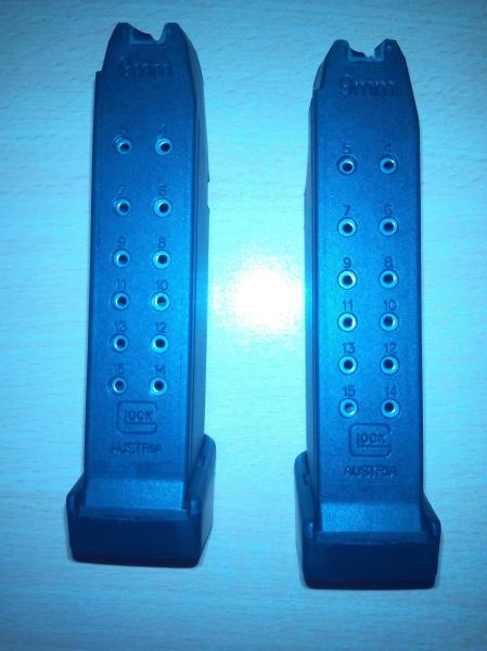 pues lo dicho cambio o vendo dos cargadores de glock 19 practicamente nuevos con tapeta +2 incorporada,por cargadores de glock 17,cz75/85 o beretta 92 para cualquier consulta dejo mi mail laikuss@yahoo.es