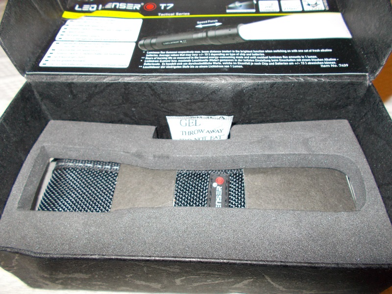 Vendo linterna táctica Led Lenser T7 sin uso, de colección, no ha sido utilizada más que para comprobar su funcionamiento; con cuerpo de aluminio anodizado negro. Pulsador táctico, tres modos de iluminación: 25, 170 y 220 lúmenes; cabezal focusable; incluye cuatro baterias Led Lenser AAA, funda de cordura, cordón de seguridad, instrucciones y caja.