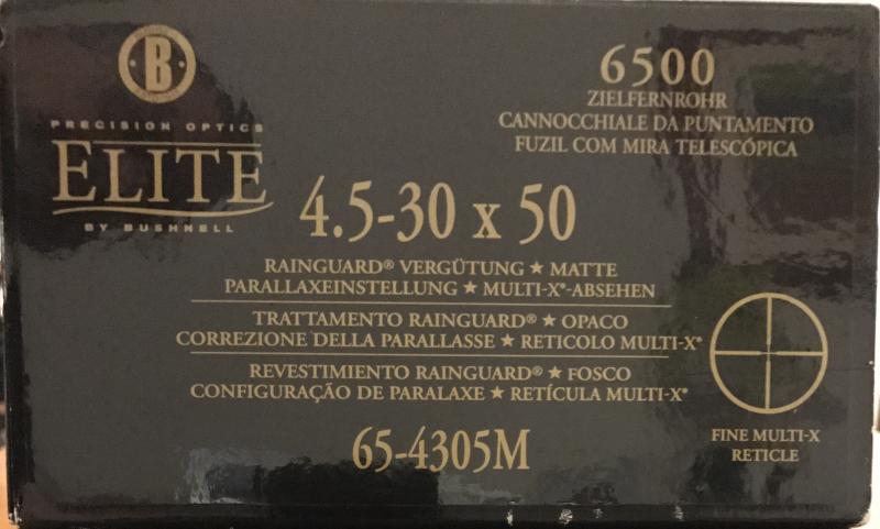Vendo visor Bushnell Elite 6500 4,5-30X50 yo he realizado con el menos de 200 disparos, 500€ portes no incluidos, se puede ver y probar en Barcelona, si alguien quiere mas fotos las mando por privado.