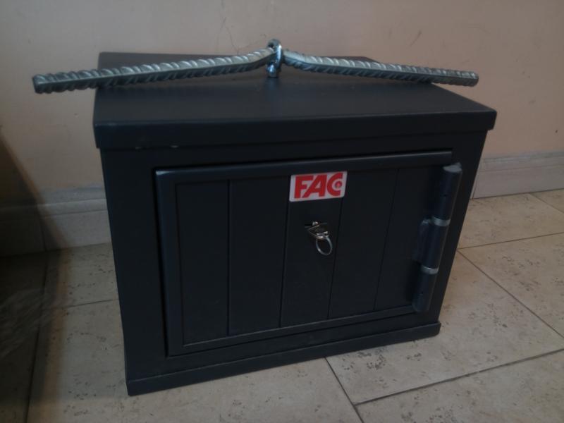 Es para 6 armas cortas y el taladro de la parte superior viene de fabrica, la varillas se desmonta , es para ayudar en el transporte de los 90 kilos que pesa la cajita.