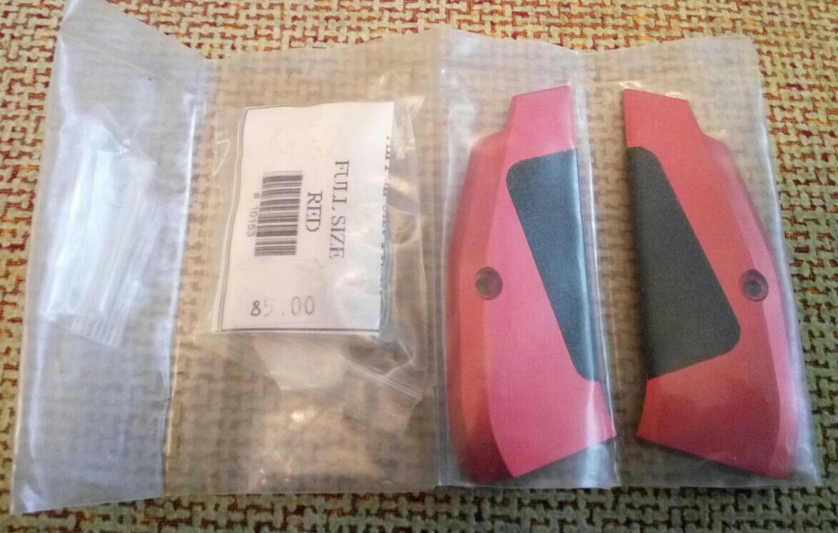 Vendo las cachas de las fotografías, sin estrenar, de aluminio con suerficie negra antifriccion, incluye tornilleria, precio 45 Euros, envío por correo certificado a la península incluido.