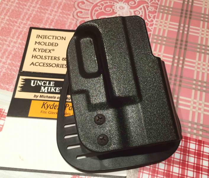 Vendida A estrenar, funda Glock Kydex Uncle Mikes para G26, G27, G28 y G33, aunque vale también para la G19 o la G17, precio 15 euros