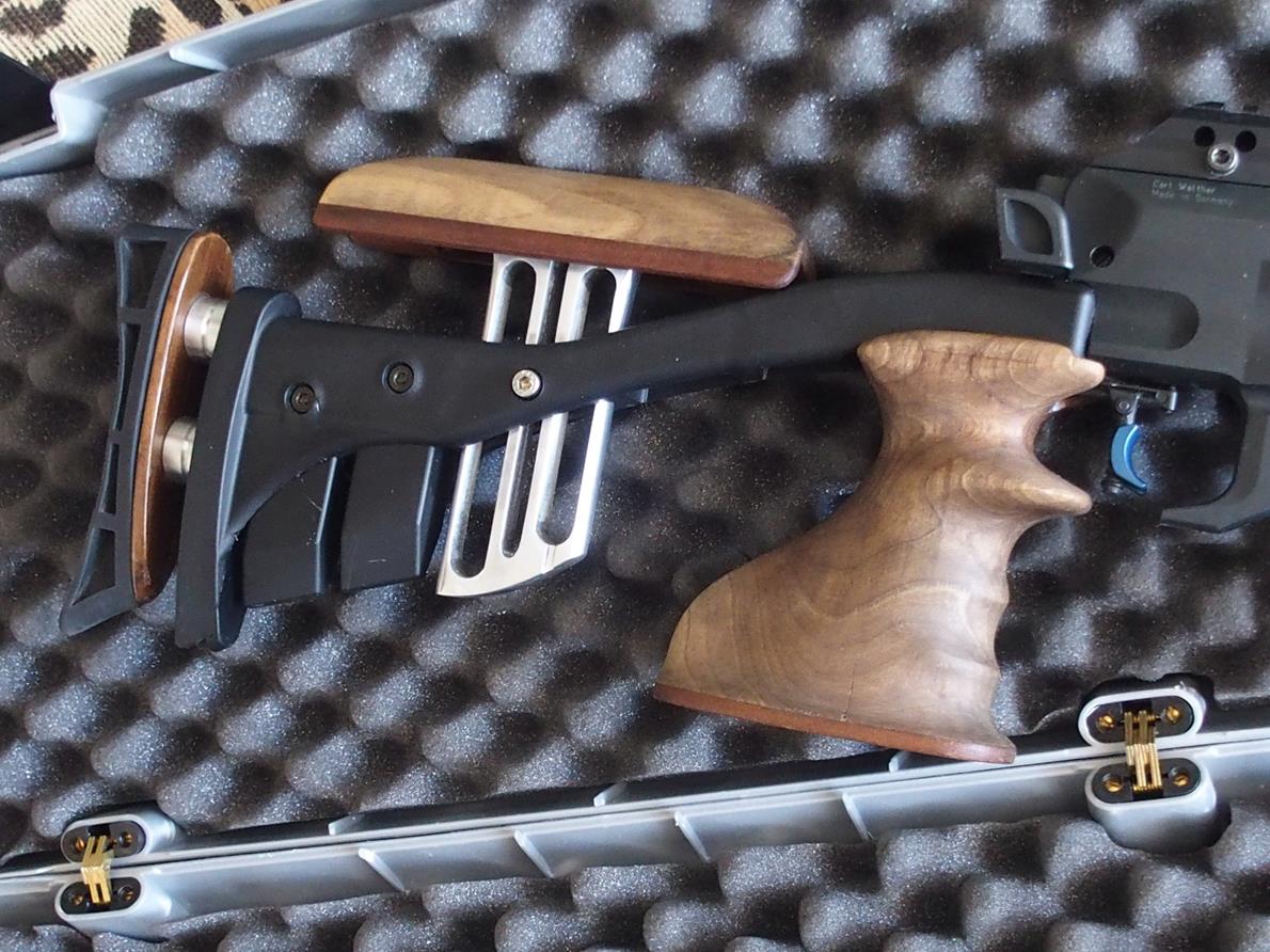 Carabina especial para Field Target fundamentalmente, con 16 julios de potencia estabilizada; cambiada la culata de plastico original por madera estupenda, incluye apoyamanos de aluminio y madera con inclinacion personalizada variable. La bombona de aire es valida hasta 2026. Tambien como añadidos lleva un gatillo de competicion mas comodo que el original y una bocacha de quita y pon. La carabina se entrega en estuche acolchado y el precio es de 540€ (envio incluido dentro de la peninsula).