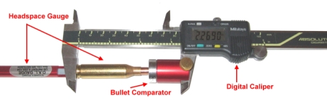 Sí mides entre dos planos paralelos no hay medida errónea, y sin el rebaje y por ejemplo la tuerca de sinclair no hay problema además el diámetro de este es menor al de hornady por lo que queda sitio para apoyar la pata del calibre en el plano del casquillo