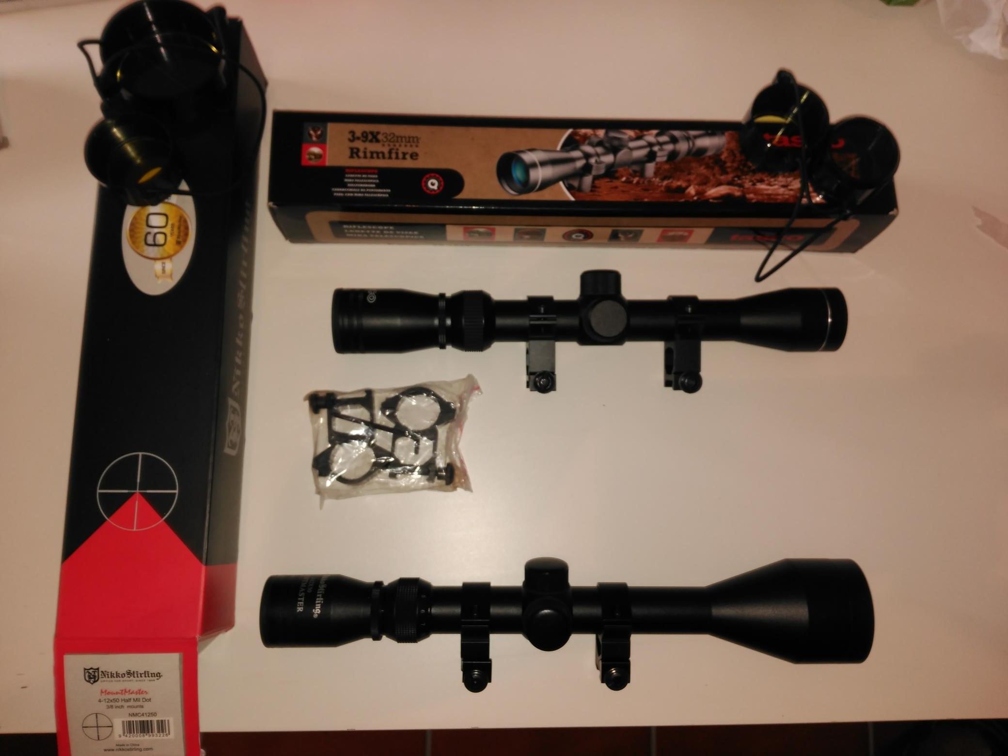Además, regalo sin estrenar un Nikko Stirling 4-12x50 half mil dot con anillas altas 10mm y otro juego de anillas altas 20mm sin estrenar.