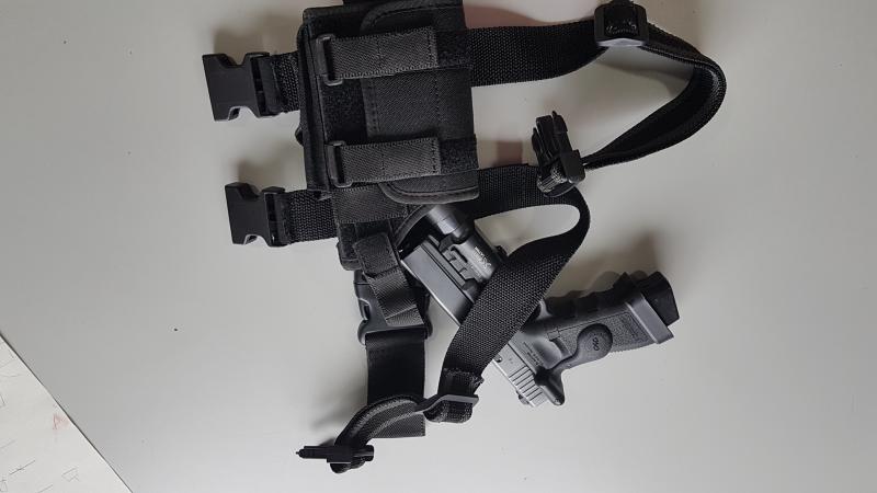 Vendo funda de la marca Vega Holsters para poner en la pierna, se puede poner en la cintura, ajustable, ideal para modelos de pistola grande o compact. Es para diestro.
