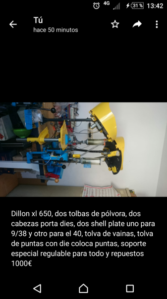 Verndo dillon 650 xl, con tolba de vainas y de puntas,die coloca puntas DAA soportes, dos cabezas porta dies, con dos tolbas de pólvora, repuestos y dos shell plate uno del 9/38 y otro para el 40 1000€