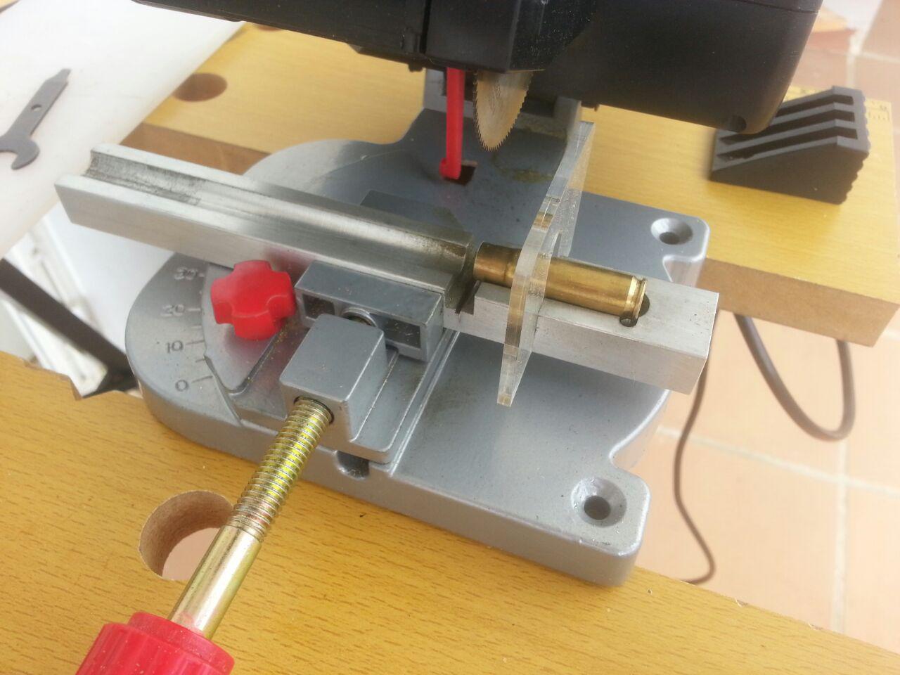Vendo este lote de mini sierra y una guia especifica para cortar vainas del 222/223 al largo de vainas del 300blackout, asi se hace mucho mas rapidas.