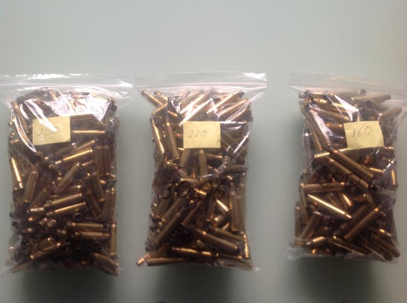 Vendo las siguientes vainas. Son varias marcas (Norma, Hornady, etc), y garantizado que todas son de un único disparo y nunca han sido recargadas.