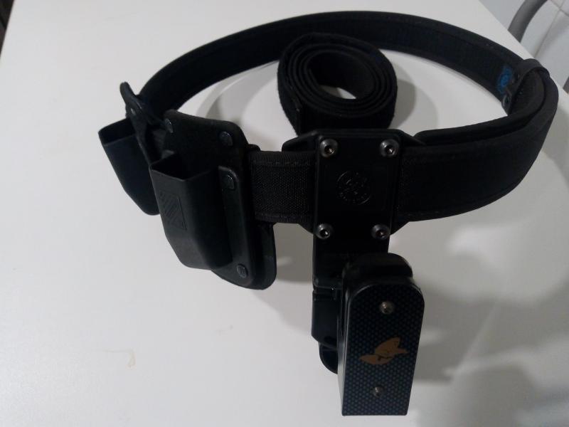 VENDO cinturón IPSC 124 CM (compuesto de cinturón interior de velcro y el exterior de cordura) donde colgar los accesorios, además hebilla) funda rápida ajustable Ghost para CZ 75/85 y dos porta cargadores.