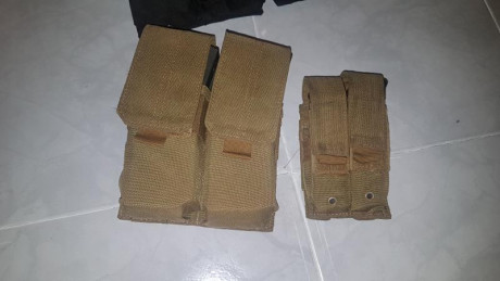Vendo porta cargadores de la marca 5.11, son para el sistema Molle, doble de pistola, y para 4 de AR, dos en cada bolsillo, los negros están más usados, a 12€ la unidad, los de color arena están prácticamente nuevos. A 15€.