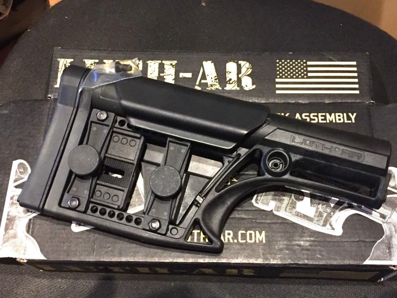 1-Culata Luth-AR nueva a estrenar, negra, modelo MBA-1 (Modular Buttstock Assembly) totalmente regulable. Inmejorable opción. Precio 90 euros mas 10 portes península.