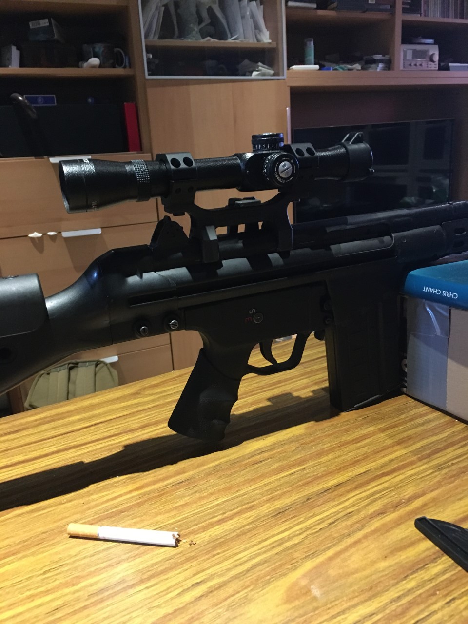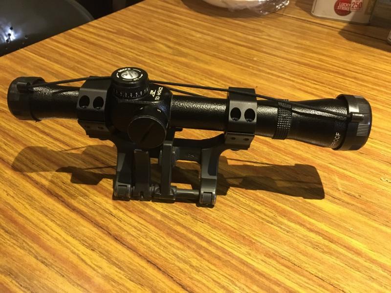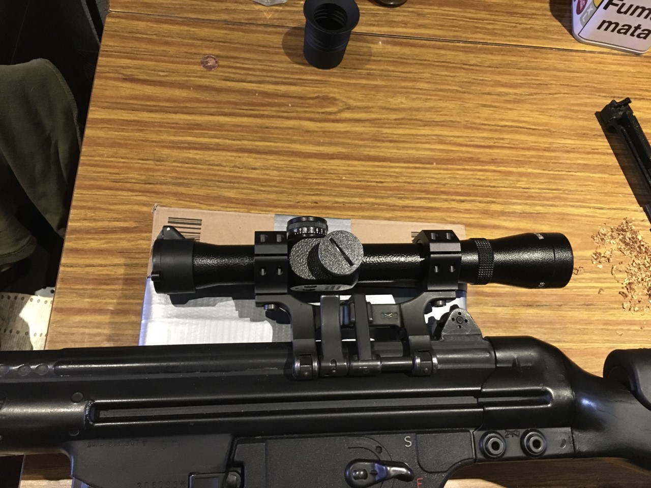 se monta y desmonta en segundos y mantiene el cero, la montura HK permite disparar con el visor y las miras metalicas sin necesidad de desmontarlo del rifle , tiene una linea de vision directa solo hay que subir o bajar la cabeza