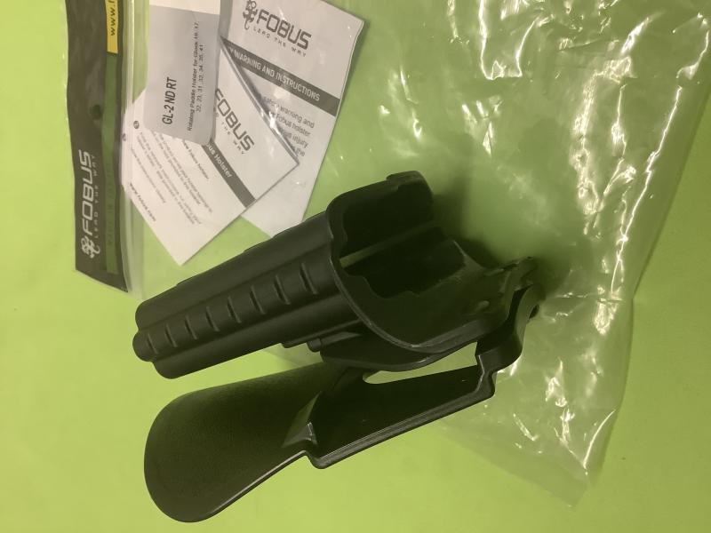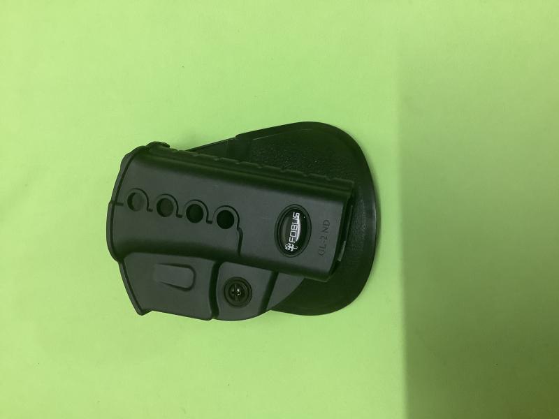 1. Funda fobus padle GL-2 NR RT rotating paddle válida para Glock 19, 17, 22, 23, 31, 32, 34, 35 y 41 según la bolsa original de la funda, yo tengo una 17 y le queda como un guante!.