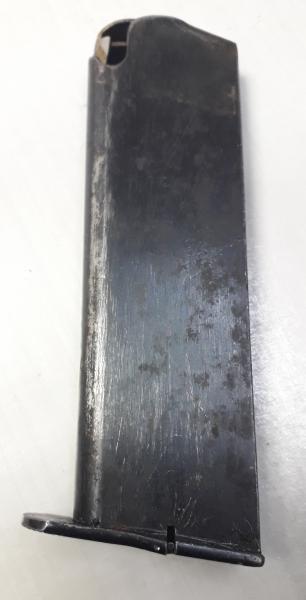 Cargador para la pistola Star modelo "AS" del calibre 9 mm largo (9x23) de 8 cartuchos de capacidad, Estado usado, pero muy bueno, va numerado ET 1183 . Una pieza repetida de mi colección. Precio 50 euros con gastos de envío incluidos a península y 45 euros entrega en mano en Madrid.