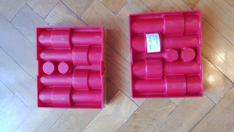 01.Cajas de plástico originales en buen estado para 4 dies. 2 unidades disponibles. 5€ cada una. Reservadas las dos.