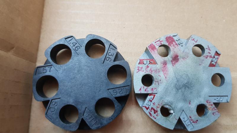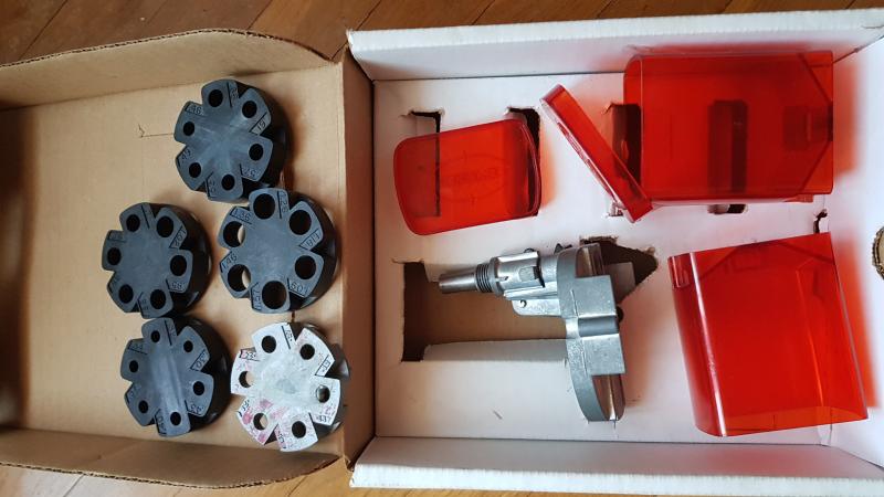 06. Auto disk powder measure. Medidor de pólvora por discos calibrados. Incluye dos tolvas y 5 discos. Usado para 9mm y .32 40€. Reservado.