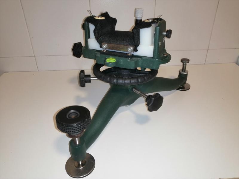 Es una Calwell Rock Br, tiene el saco estrecho y algunas mejoras, tacos nilon para el saco, muelles para las holguras, tornillo con volante grande para el ajuste de altura fino. Tambien se incluyen las bases de las patas para no estropear las mesas, que normalmente se venden por separado.
