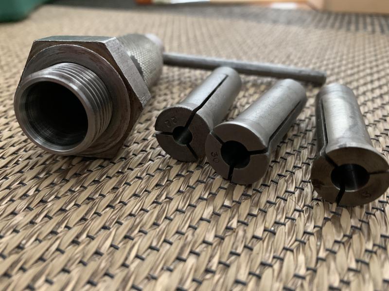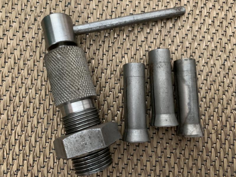 Matriz, palanca y tres golletes para los diferentes calibres.