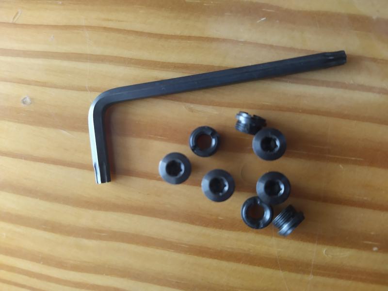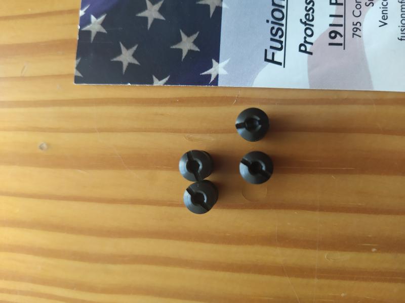Tornillos y bushings para poner cachas finas en pistolas modelo 1911, son de Fusion firearms, nuevas sin uso e incluyen la llave, 35€, envío incluido.