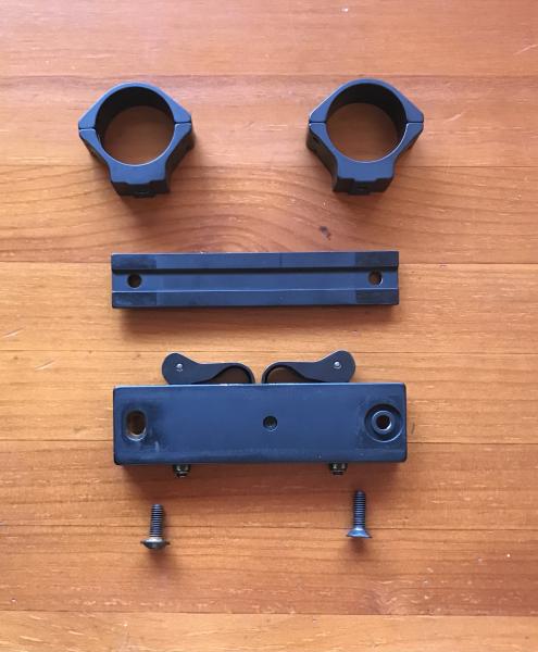 Se ofrece una montura de acero la plataforma, anillas de aluminio aeronautico, de 34 mm. Muy buen estado.