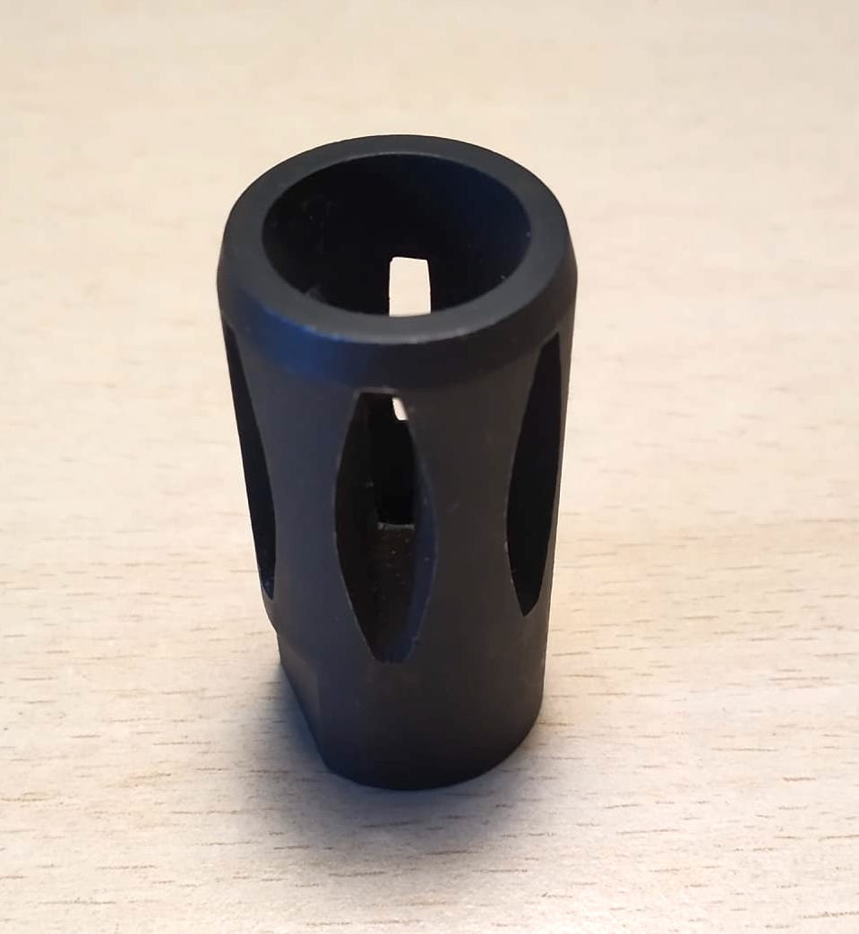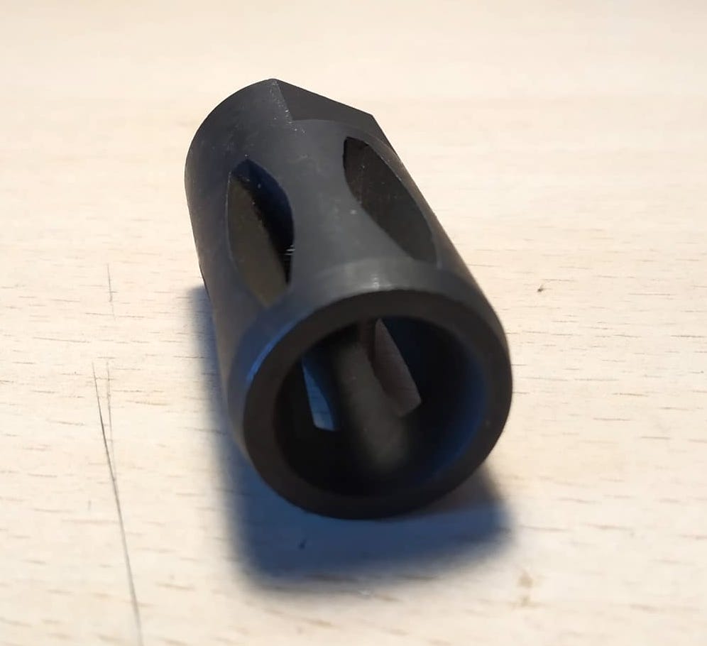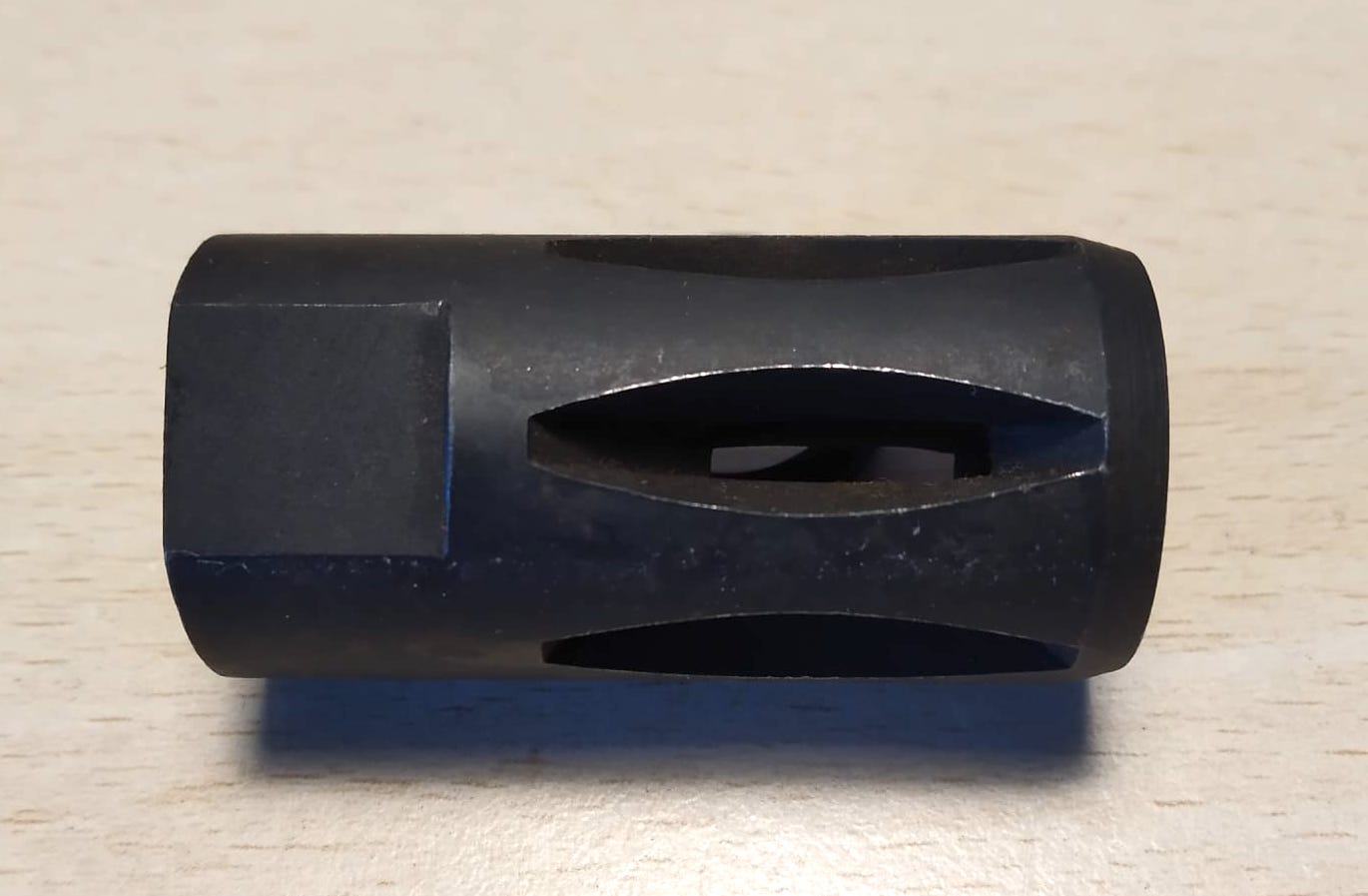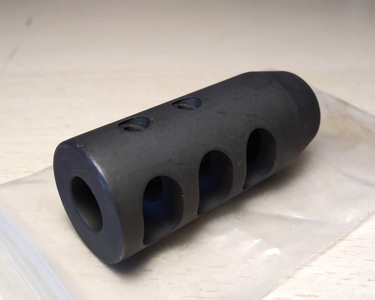 Me aparecieron por un cajón estos dos elementos que no uso y x tanto los saco a la venta. Se trata de una bocacha apagallamas tipo M16/AR-15 en estado nuevo, con paso de rosca 1/2x28, en acero parkerizado, normalmente adaptable a la mayoria de cañones del .22 (.223, .222, etc.). Por otro lado está el freno de boca con el mismo material y acabado, pero este en paso de rosca 5/8x24, para cañones del .30