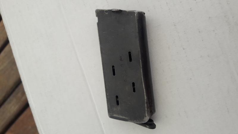 ese cargador tiene toda la pinta de pertenecer a una pistola Belga , y mas concreto a la Bayard 1908 del calibre 7,65 ( 32 ACP )