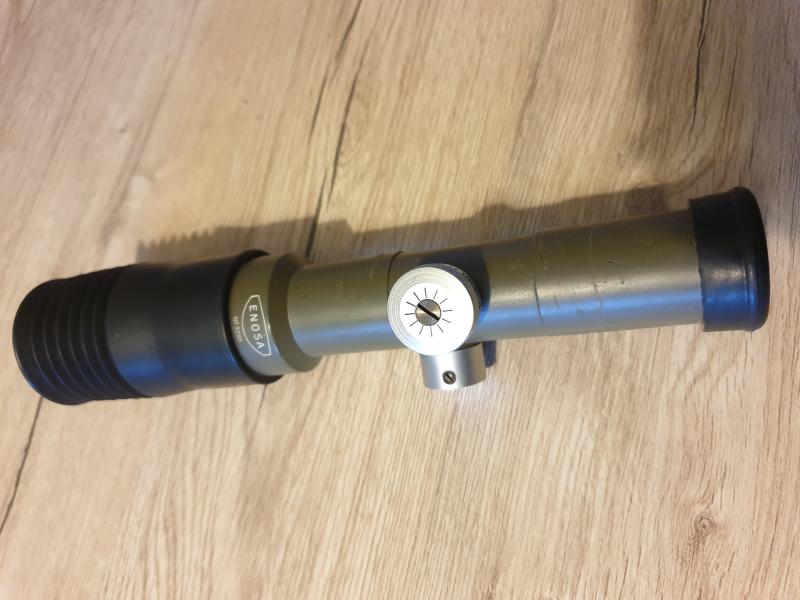 Bueno con todo el dolor de mi corazón pongo en venta una pieza de mi colección, un visor Enosa del usado en los Cetme, no tiene monturas y presenta pequeñas marcas del paso del tiempo y el uso ( roce de monturas ).Está en perfecto estado. Precio 500