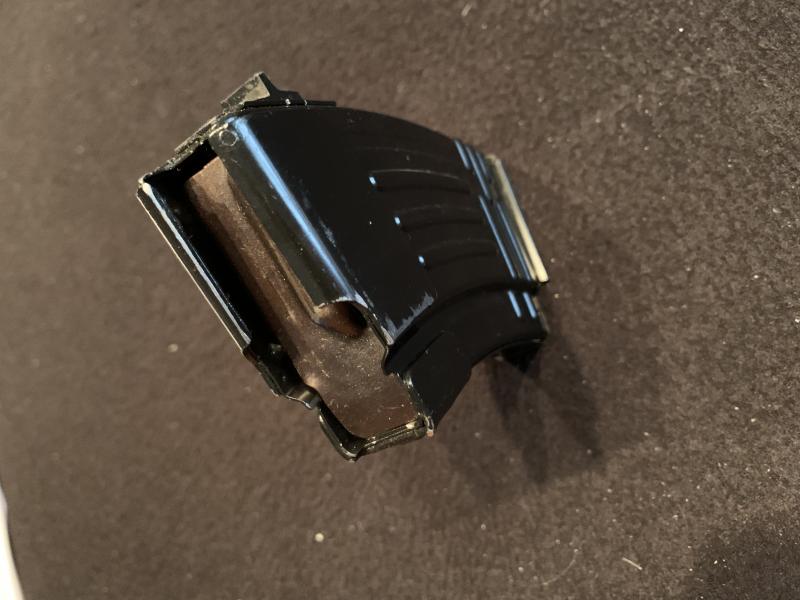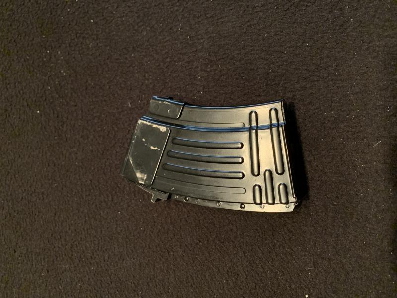 Se vende este cargador para AK conforme al reglamento que establece que no puede tener mayor capacidad de 10 cartuchos, está prácticamente nuevo y como se aprecia en la foto está fabricado en Corea, lo use muy poco en un AK SDM107 de accionamiento manual. Está en Barcelona ciudad y su precio es de 40€ + portes.